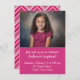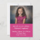 Anuncie e celebre o passo significativo que sua criança está tomando no caminho pacífico com esta Foto Simples com o Convite Batismo Zig-Zag Rosa. Insira uma foto do futuro membro da igreja no topo e adicione os detalhes do evento abaixo em texto branco claro contra fundo rosa profundo. A parte traseira da placa apresenta um padrão enérgico de ziguezague em sete tons de rosa. Ideal para cartões físicos e downloads digitais, este na moda e este convite personalizável dão o tom para uma celebração significativa. Que a jornada comece com estilo e graça enquanto você convida os entes queridos a se juntar à sua celebração de fé e amor.