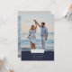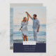 Simples marinho azul, design, casamento na praia, salvar as datas, perfeito para um casamento na praia. Simples design de duas fotos mostra uma foto e seus detalhes de casamento na frente. Adicione uma segunda foto de noivado ao verso.