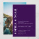Este convite apresenta um fundo púrpura escuro chic com um design minimalista. Os nomes do casal são destacados em tipografia ousada e elegante, acrescentando um toque de elegância moderna ao convite. Adicione sua foto atrás.