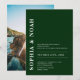 Este convite apresenta um fundo verde esmeralda chic com um design minimalista. Os nomes do casal são destacados em tipografia ousada e elegante, acrescentando um toque de elegância moderna ao convite. Adicione sua foto atrás.