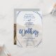 Um convite de casamento moderno e simples com 2 fotos, com uma camada branca, cor azul do quadro de borda do ano e letra elegante do script, adicione 2 de sua foto favorita. Um casamento simples e elegante.