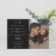 Compartilhe sua história de amor com elegância moderna com este minimalista temido Foto Simples Preta e Convite para Casamento Monograma com a foto do seu casal favorito e um monograma personalizado. O layout limpo combina elegância do eterno com encanto contemporâneo, mostrando suas iniciais em um roteiro elegante, aliado à tipografia moderna. Projetado para casais que apreciam simplicidade e sofisticação, esse convite combina uma foto pessoal com elementos refinados de design para criar uma primeira impressão memorável. Perfeito para temas de casamento monográficos e coordenação perfeita com suites modernos de papelaria de casamento.