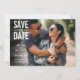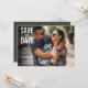 Esta fotografia tipográfica moderna salva a data do cartão postal apresenta a sua foto especial, sobreposta com os seus nomes, data e local em texto branco. Você pode personalizar a parte de trás com sua cor favorita, adicionar detalhes adicionais ou deixar o vazio. Projetado por Thisnotme©