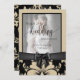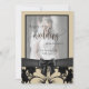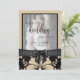 Feliz aniversário de casamento de 25 anos foto tradicional laço preto, padrão floral azul cartão de aniversário personalizado com escrita tradicional. Confira a elegante coleção de decoração de casamento e lar.