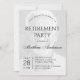 Um convite de festas de aposentadoria com uma foto em preto e branco em ambos os lados. As palavras introdutórias são texto arquivado. O nome está escrito em uma caligrafia elegante. A data no tempo está em uma coluna esquerda, separada por uma linha, com o dia em grandes dígitos. Todo o texto está de volta, em uma foto transparente. A foto do marcador de posição é AI gerada com a IA do Photoshop. Tem um filtro preto e branco.