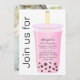 Convites Foto: Trendy Modern White Pink Boba Tea Birthday