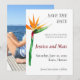 Foto tropical Salve a data. Convide seus hóspedes para um oásis tropical com nossos Cartões salve a data atordoantes com flores de hibisco vibrantes e limpando o verde. Estas cartas elegantes capturam a essência de uma celebração quente e ensolarada, definindo o tom para um evento memorável.