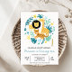 Foto Green Chamando Todos os Animais da Festa Convite para Animais Safari ou Animais da Festa Receberam o primeiro convite de aniversário para um bebê com três animais da selva e uma folha e coroa floral. Este convite para o primeiro aniversario de todos os animais da festa também apresenta um falso número de brilho dourado e uma foto no verso.