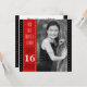 Um design colorido vermelho e preto muito bonito, corajoso que trabalhe bem com as fotografias preto e branco de sua filha que comemora seu décimo sexto aniversário doce! Convide todas suas namoradas a uma celebração especial do doce 16 com este cartão à moda. A rotulação chique elegante das características de design na parte dianteira com uma fita vermelha brilhante costurada do estilo e bordas doces do polkadot que coordenam com o bolo de aniversário triplo da camada com uma cereja no gráfico superior no verso. Tem diversos fáceis personalizar áreas de texto no verso para nome da sua menina do aniversário e todos os detalhes do partido do sleepover ou da celebração, assim como a informações de contacto do rsvp. Ajuste seus tamanho e colheita da imagem da foto ao terno. A imagem da amostra do dreamstime é apenas para fins ilustrativos - substitua com sua própria fotografia.