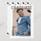 Comemore as conquistas de seu formando com este convite para a graduação em preto-e-branco. Apresentando um título de "FORMANDO" ousado com um gráfico de boné de formatura, este design mostra uma foto personalizada do formando na frente. O verso do convite inclui detalhes essenciais de eventos com tipografia elegante, complementada por um padrão repetitivo de boné de formatura para um toque festivo. Ideal para segundo grau ou formandos, este modelo é totalmente personalizável para corresponder ao estilo do seu formando.