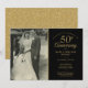 Personalize com a sua foto de casamento favorita e os detalhes da sua celebração especial do 50º aniversário de casamento dourado em tipografia dourada elegante em um fundo preto. O verso apresenta confetes de coração de amor dourado. Concebido por Thisisnotme©