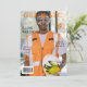 Um convite para fotos da graduação em estilo de revista de engenharia moderna, com uma foto personalizada de engenheiro com um tom cor de laranja quente no fundo — perfeito para celebrar esse marco com um toque elegante e profissional.