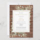 Um convite de lembrança fotográfica personalizado rústico de celebração de vida com vegetação em um fundo de painéis de madeira. Criado por Thisisnotme©