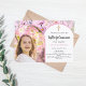 Convites Fotografia floral rosa Primeira Comunhão Santa