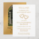 Crie um convite elegante e falso de escritura em ouro com esta convite de festas surpresa do 50º aniversário de casamento. Adicione uma foto no verso do convite para um adorável convite personalizado para fotos arquivadas. Personalize facilmente este convite de festas de na moda, adicionando os nomes do casal, a data e hora da parte, o local e outros detalhes escolhidos. Toda a tipografia moderna e simples é editável. "Celebrar 50 Anos de Casamento" pode ser personalizado para qualquer ano de aniversário. Eu criei os dois corações de gradiente ouro com impressões de botões e folhas para um sentimento botânico. O ouro único que os corações de gradiente são aninhados um ao lado do outro para um toque romântico e adorável. Veja minha coleção de aniversário de casamento do ouro 50º para decorações de mesas de festas e favores. Crie uma bela festa memorável para honrar um longo compromisso de amor.