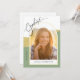 Este incrível convite para festas de formatura apresenta uma foto arquivada na frente e um segundo no verso. O design é acentuado com a cor verde-sábio e uma cor de ouro texturizada falsa. A palavra "formando" aparece num roteiro moderno. O texto personalizado, no verso, permite adicionar os detalhes do convite de festas.