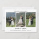 Anuncie o dia do seu casamento com o nosso Cartão de Save the Date de Casamento com Foto e Letra Moderna, uma forma elegante e personalizada de compartilhar a sua notícia emocionante. A frente do cartão apresenta um belo layout com quatro fotos, mostrando suas fotos favoritas de casal ou de noivado, combinadas com uma mensagem elegante de “Save the Date” em tipografia moderna. Essa frente cuidadosamente projetada cria uma primeira impressão romântica e atraente para os seus convidados. A parte de trás do cartão destaca uma foto de casal em tamanho grande, juntamente com seus nomes, data do casamento e cidade e estado, criando um visual limpo e coeso que se sente moderno e atemporal. Esse cartão de save the date personalizado é perfeito para casais que desejam combinar fotos significativas com design sofisticado. Ideal para casais que procuram cartões de save the date com fotos, save the dates de casamento modernos ou papelaria de casamento personalizada, esse design combina estilo contemporâneo, simplicidade e elegância, perfeito para definir o tom da sua celebração de casamento.