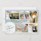 Multifoto, cartões de agradecimentos de casamento com grande dólar de areia branca. Adicione um obrigado que você envia aos convidados com o texto "Amor e Obrigados" impresso sobre o dólar. Carregue cinco das suas fotos favoritas do dia para modelos de vários tamanhos e orientações. Uma imagem de fundo de água azul clara compensa os quadros brancos finos ao redor de cada figura. O texto é azul-escuro-verde, usando um estilo de fonte moderno de script. A parte de trás do cartão também tem uma cena de praia. O crédito do designer no verso pode ser facilmente removido por você, se preferido.