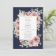 Um convite de casamento moderno e elegante com rosas florais bonitas e tipografia sofisticada com um fundo azul-marinho e sua foto especial no verso. Criado por Thisisnotme©