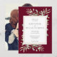 Com delicadas folhas verdes em aquarela sobre um fundo burgundy, este convite de casamento botânico elegante pode ser personalizado com sua foto e informações especiais do dia do casamento. Desenhado por Thisisnotme©