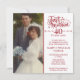 Personalize com a sua foto de casamento favorita e os detalhes da sua celebração especial de aniversário de casamento de rubi de 40 anos em tipografia elegante. O verso apresenta confetes de coração de amor. Criado por Thisisnotme©