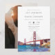 Este convite de casamento em aquarela da Ponte Golden Gate de San Francisco pode ser personalizado com suas informações em tipografia elegante e todas as suas fotos especiais no verso. Criado por Thisisnotme©