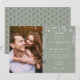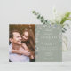 Com a sua foto especial, bela folhagem floral de flores silvestres emoldura os detalhes da sua celebração de casamento especial definida em tipografia chic em um fundo verde sage. Projetado por Thisisnotme©
