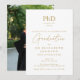 Este convite de formatura de PhD branco e dourado elegante pode ser personalizado com os detalhes da sua formatura e uma foto no verso. Criado por Thisisnotme©