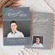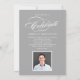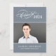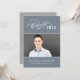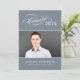 Celebre seu formando com este convite de festa de formatura elegante, apresentando um script de caligrafia "Turma de" com o ano em um fundo de ardósia ao lado de um retrato de formatura emoldurado por finos acentos de linha. O verso cinza apresenta um belo título "Celebre" com um segundo espaço para foto e todos os detalhes da sua festa. Texto totalmente personalizável em ambos os lados.