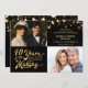 Convide seus convidados com este convite de aniversário de 40 anos de casamento em preto e dourado com estrelas douradas com tipografia de caligrafia retrô que diz 40 ANOS EM CONSTRUÇÃO, que incorpora o número de anos casados e o ano do casamento dentro do design e 2 fotos (talvez fotos do ENTÃO e AGORA para um convite memorável). Os detalhes do convite para a festa estão no verso. DICA DE FOTO: Escolha uma foto com o assunto no meio e/ou pré-corte-a em uma forma semelhante à mostrada ANTES de fazer o upload e use a guia ALTERAR na seção PERSONALIZAR. Entre em contato com o designer via Zazzle Chat ou makeitaboutyoustore@gmail.com se você gostaria que este design fosse modificado ou estivesse em outro produto.