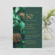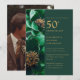 Este convite de aniversário de casamento de 50 anos em floral dourado e verde esmeralda elegante pode ser personalizado com suas informações em tipografia moderna e uma foto especial no verso. Projetado por Thisisnotme©