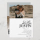 Um convite de casamento moderno e ousado com nomes personalizados com caligrafia escrita à mão e letra serif, 2 nomes, 2 estilos. Todas as cores de texto, nomes e fundo são personalizáveis com 2 fotos. Um convite simples e minimalista, adicione seu código qr para rsvp, detalhes e tudo em um convite.