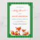Convites Fox Mama and Baby Shower Green Stripes Cute