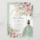 Personalize este elegante cartão de convite floral cor-de-rosa Quinceañera / Sweet 16, fácil e rapidamente. Basta clicar no botão personalizar para editar os textos, alterar as fontes e as cores das fontes. Apresentando lindas rosas cor-de-rosa, verde e uma garota vestida com um lindo vestido verde de bola. Também disponível em formato digital de download instantâneo. No menu suspenso Choose Your Format (Escolher seu formato), selecione Instant Download (Download instantâneo). Para uma aparência perfeita e coordenada, explore nossa variedade de itens correspondentes disponíveis no armazenamento. c) Paperie fina somerset