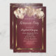 Um quadro elegante, balões e confete em um fundo burgundy.