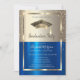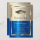 Boné de formatura de aquarela e diamantes de ouro sobre fundo azul-dourado.
