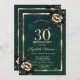 Um convite moderno, chico e glamouroso com rosas elegantes sobre fundo verde.