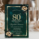 Um convite moderno, chico e glamouroso com rosas elegantes sobre fundo verde.