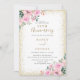 Dourado Quadro Cor-de-Rosa Floral 50º Convite de Aniversário de Casamento