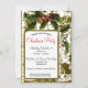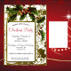 Um quadro de ouro, com folhas e bagas sagradas, está estilizado num olhar vitoriano vintage para cercar um Convite de festas de Natal. O texto está em fontes contrastantes - um script elegante e sans serif nítido, tudo em preto exceto o "Partido de Natal", que é impresso em um roteiro vermelho. Seu convite está centrado em uma estrutura fora do centro, no dentro inferior esquerdo, o lugar dourado contra o branco. A parte traseira da placa é vazio branca - um lugar de excelente para fornecer instruções se os seus convidados precisarem de ajuda para encontrar o seu local.