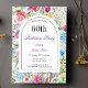 Sábado floral colorido 60º Aniversário com flores bonito em campo selvagem em roxo, lavanda, folhas verdes e muito mais, com uma tipografia com script escovado num fundo elegante e uso para qualquer idade de meninas e mulheres.