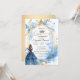 Dourada tiara brilhante, vestido de princesa azul-aquarela e moldura sobre fundo dourado. Divirta-se na sua festa da quinceañera com este convite elegante. Convide seus convidados para levantar um copo e se unir à diversão com estes convites festivos.