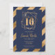 Convites Frame Sweet 16 Marinho Stripes de folha de ouro ID