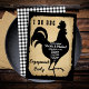 Estilo de fazenda russo com aparência de papel rasgado e envelhecido e verificação de búfalos preto e branco como fundos para uma silhueta de galo preto "I DO CHURRASCO" por Designs Holiday Hearts (direitos reservados).