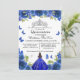 Celebrar o encanto da sua Quinceañera com o nosso belo convite azul real à Floral adornada com borboletas delicadas e um motif da coroa real. O fundo azul empoeirado define o tom perfeito para a ocasião.