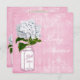 Convites cor-de-rosa e brancos elegantes do chá de fraldas para meninas com um frasco de pedreiro branco e cor-de-rosa bonito da bola de vidro e uma ilustração branca bonito da flor do vintage do hydrangea em uma colagem antiga à moda do rosa do chique com as decorações ornamentado brancas bonitas, uma libélula, e escrita desvanecida em um fundo à moda do teste padrão do harlequin. No reverso do convida é pérolas brancas impressas glamoroso e esteira do laço com texto para que você personalize com seus detalhes do partido. Elegante, na moda, elegante, feminino, moderno convida perfeito para o primavera, o verão, a queda/outono e os chás do inverno. Todo o texto pode facilmente ser personalizado para encontrar suas necessidades e você pode mudar o estilo, a cor e o tamanho de pia batismal da pia batismal se você deseja. Se você precisa algum auxílio que personaliza seu produto me contacta por favor através de minha loja e eu estarei feliz ajudar. A esteira da pérola pelo ©Hazel Kinvig-Paul www.design-a-dream.co.uk satisfaz nota - tudo convida em Zazzle tem imagens impressas do plano.