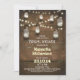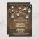Um convite perfeito para o chá de panela de campo vintage com frascos de mason e cordas de luzes. O design consiste em luzes cintilantes de fundo de madeira rústica e brilhantes com frascos pendurados de mason. Entre em contato comigo se precisar de ajuda para personalizar ou tiver uma solicitação de cor personalizada.