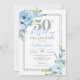Convites Frente azul-rústica prateada floral 50º aniversári