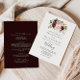 Este rusticado convite de casamento botânico floral e traseiro é perfeito para um casamento simples. A design apresenta flores e folhagem lindas e coloridas desenhadas à mão, elegantemente organizadas em buquês atraentes. Salve o papel, incluindo mais detalhes na parte traseira do convite em vez de em uma placa de gabinete separada.