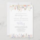 Este convite para casamento multicolorido de flor silvestre e de volta é perfeito para um casamento rústico. O design apresenta uma coloração aquosa, rosa, púrpura, vermelha, burgundy, amarela, flores brancas e borboletas, com vegetação nebulosamente embebida em buquês florais elegantes. Salve o papel, incluindo mais detalhes na parte traseira do convite em vez de em uma placa de gabinete separada.